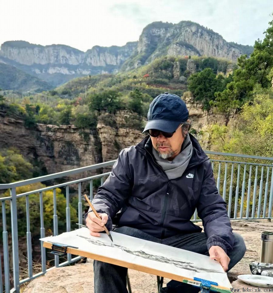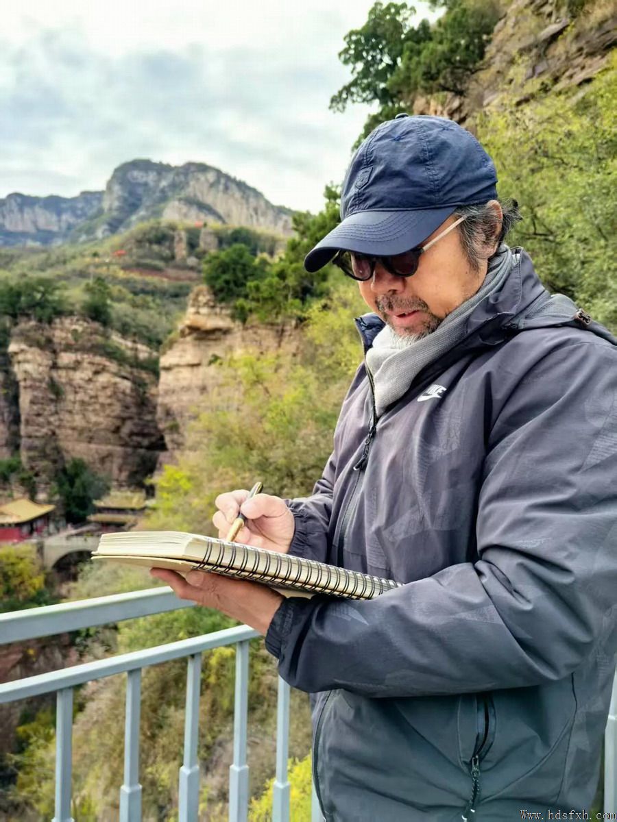 据悉,去年秋天,李琦应邀随中国民主促进会艺术家采风团赴井陉苍岩山采风,被这里奇秀雄伟的峻峰林壑与丰富优美的人文景观所打动,留下大量的写生稿,并即兴创作七律《秋上苍岩山》: