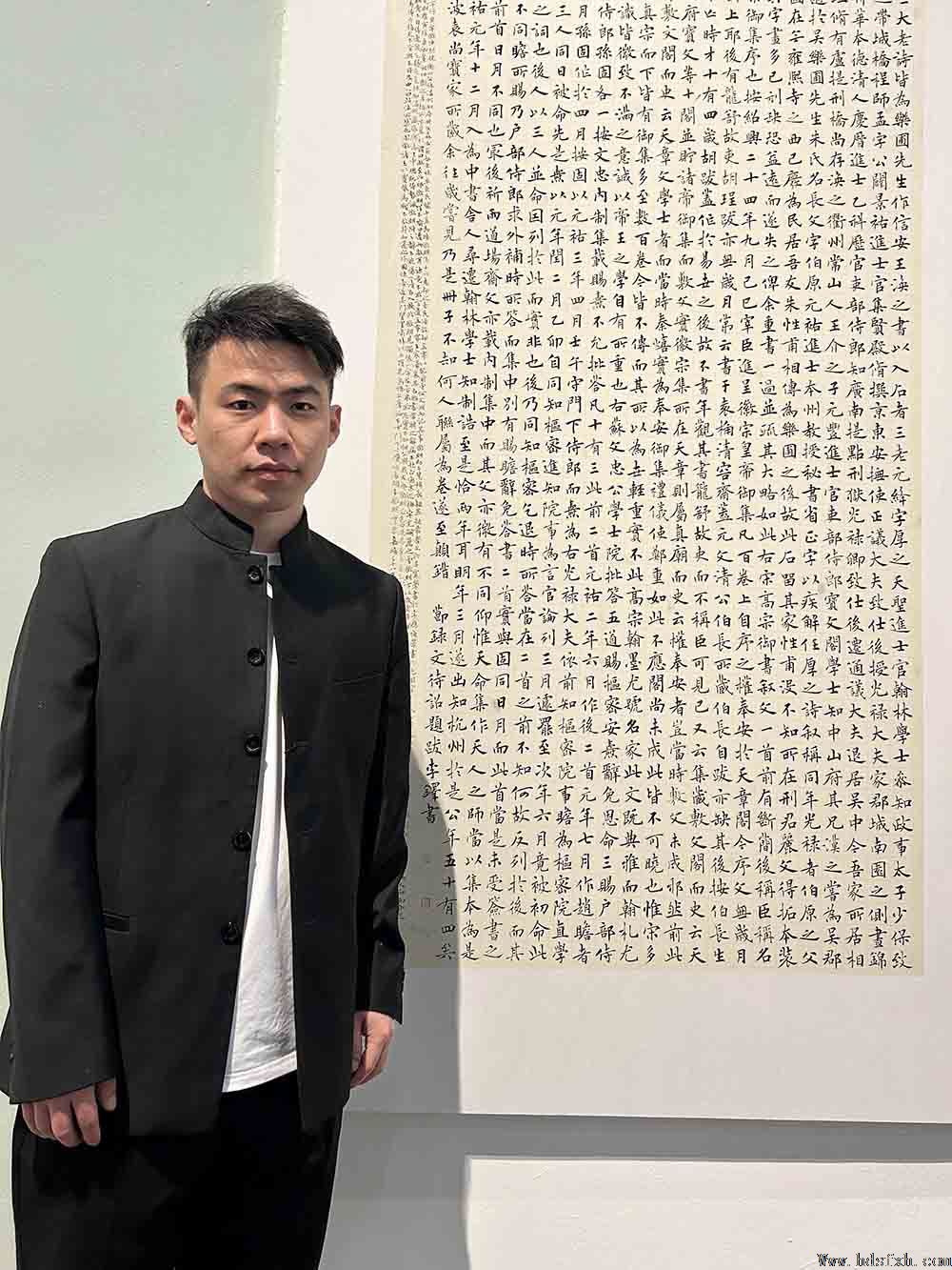 为备战此次国展,精心构思,反复打磨。创作中,他不仅注重笔法的精到与结构的严谨,更在书写内容与作品形式的完美结合上下足了功夫,力求在传承经典的基础上有所创新,最终凭借过硬的笔墨功夫和独特的艺术构思成功入展。